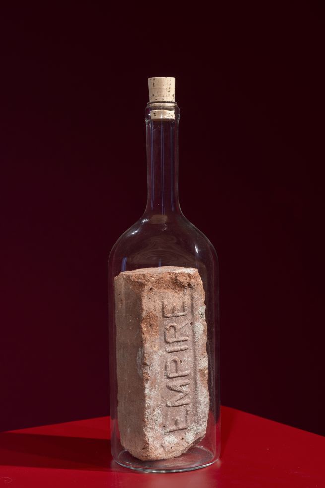 Empire (2025), prodotto per la mostra Seasons da Maurizio Cattelan e presentato alla Gamec, riflette su un potere che non si concretizza mai ed esplora la tensione tra l’ambizione di costruire e conquistare e l’impossibilità di agire in un contesto che limita ogni azione. Un mattone di terracotta su cui è incisa la parola Empire - che richiama immediatamente l’idea di potere, dominio e costruzione di strutture - è intrappolato in una bottiglia di vetro, a suggerire un potenziale atto di ribellione che non riesce a prendere forma, un desiderio di rottura che non si compie, una rivoluzione senza esito. L’accostamento tra la solidità del mattone - simbolo di forza e potere - e la fragilità del vetro - simbolo di trasparenza ma anche di contenimento - genera un contrasto profondo. L’impero evocato è uno spazio mentale o politico che non si realizza, una costruzione che resta sogno o minaccia mai concretizzata. La scultura gioca anche su un altro livello interpretativo: quello del messaggio nella bottiglia, di un segnale lanciato verso un futuro incerto. Sebbene potenzialmente potente, il messaggio rimane isolato, protetto ma inaccessibile, simbolo di un’incompiuta comunicazione, di una storia che non verrà mai raccontata o che rimarrà sconosciuta.Il lavoro mette così in scena un conflitto tra forza e fragilità, tra volontà e limite, in una riflessione sul fallimento delle utopie e sull’inazione che paralizza.