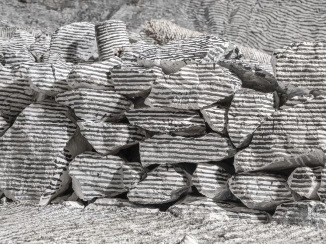Dal 7 giugno al 14 settembre 2025 a Dossena, nel comprensorio minerario più antico della Val Brembana da cui per secoli sono stati estratti materiale ferroso e fluorite, l’artista tedesco Julius von Bismarck (Breisach am Rhein, 1983) realizza il suo quinto landscape painting: un dipinto del e nel paesaggio, in cui il gesto pittorico dissolve il confine tra il soggetto ritratto e il supporto su cui è realizzato. Per il suo intervento Landscape Painting (Mine) l’artista si ispira all’estetica delle incisioni e degli studi di paesaggio che hanno caratterizzato la ricerca di molti protagonisti della storia dell’arte, da Albrecht Dürer a Caspar David Friedrich, da Paul Cézanne a Paul Klee. In particolare, i riferimenti principali di von Bismarck sono le vedute italiane, le xilografie e le incisioni su rame dei secoli XVIII e XIX, che dovevano rappresentare i paesaggi nel modo più realistico possibile. Con un approccio diametralmente opposto, l’artista interviene sulle pareti di roccia all’interno della miniera creando un trompe-l’œil rovesciato: invece di rendere la tridimensionalità attraverso trucchi prospettici, dipinge linee e tratteggi - tipici delle tecniche incisorie del passato - che trasformano lo scorcio della cava in un’immagine bidimensionale. Un’intera porzione della prima galleria della miniera, selezionata per le sue qualità prospettiche e per la scala monumentale, è semplificata in un paesaggio interamente in bianco e nero, la cui tridimensionalità può essere ricostruita nell’immaginazione dei visitatori.