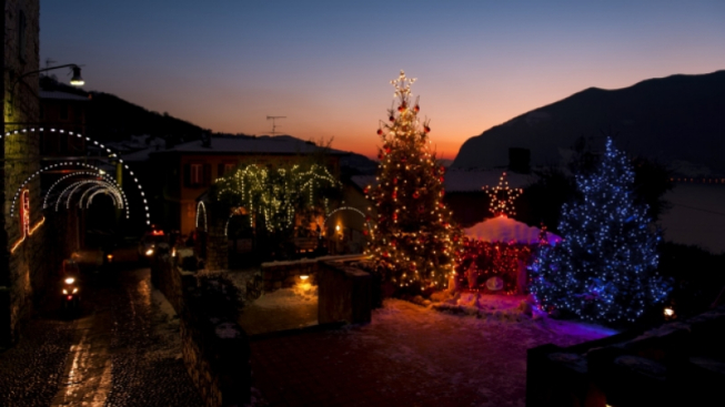 Partiamo dal Monte Isola, che si specchia nelle acque profonde del Lago d’Iseo: le sue piccole frazioni sono addobbate a festa con luminarie a tema, alberi di Natale e presepi. Sbarcando sull’isola, che si raggiunge con una traversata di pochi minuti di battello, si respira un’atmosfera immota, senza tempo, accresciuta dalla straordinaria cornice delle antiche architetture dei suoi piccoli borghi, affacciati sul lago, o abbarbicati sulle alture.