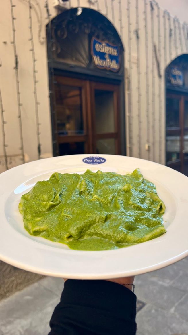 Spostandosi verso il Porto Antico e imboccando via del Molo, si arriva in vico Palla 15r, dove si può entrare nel mondo dell’Osteria di vico Palla, presente dal 1999. È gestita da Maurizio e Claudia, che negli anni hanno ampliato il locale, trasformandolo da piccola trattoria con un menù a base di pesce, fino a diventare un ristorante tipico talmente frequentato da dover dividere in due i turni per pranzi e cene, impiegando due brigate di cucina. Oltre ai piatti di mare, il basilico che viene traformato in Pesto è il re della cucina che, a seconda della stagione, viene aggiustato con gli altri ingredienti della ricetta. Se il clima è più freddo, ad esempio, il basilico ha bisogno di un rinforzo particolare di aglio, pinoli e formaggio per rendere il gusto più vivace. Da provare i Mandilli Pesto a cui aggiungiamo una piccola curiosità dedicata ai foresti, ossia ai non genovesi: si tratta di lasagnette sottili di pasta fresca che ricordano dei fazzoletti. Mandillo, infatti, è la traduzione in genovese - derivante dall'arabo mindil - proprio della del sostantivo fazzoletto. Per assaporarli al meglio, ecco un piccolo consiglio della casa: prima di gustarli, un giro d’olio a crudo, per farne risaltare ancora di più la bontà e il carattere.