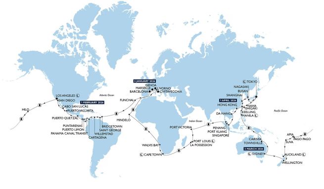 Nel 2027, il giro del mondo prevede un itinerario del tutto inedito con una doppia esplorazione dell'oceano Atlantico e dell'Oceano Pacifico perché la nave, una volta giunta in Australia dopo aver circumnavigato il Sud America, anziché proseguire il viaggio verso l'Asia, tornerà indietro esplorando le isole più a nord del Pacifico e valicherà il Canale di Panama per poi attraversare il mar dei Caraibi e proseguire verso il Mediterraneo.