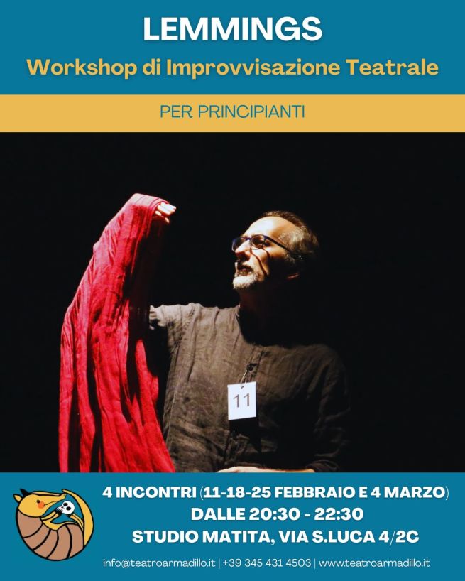 Dopo il successo delle precedenti edizioni, riaprono le porte dello Studio Matita con quattro incontri, a partire dall'11 febbraio 2026, per riscoprire il piacere del palco senza copione. A Genova con l'inizio del nuovo anno, torna uno degli appuntamenti più attesi per chi ama la creatività spontanea: Lemmings, il corso breve di improvvisazione teatrale ospitato dal Teatro dell’Armadillo.