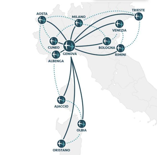 Nella fase iniziale, l'hub di Genova genererà circa 20-30 posti di lavoro diretti tra personale amministrativo, commerciale e di terra, cui si aggiungeranno almeno 50 unità tra equipaggi di volo. Dopo il volo Genova-Trieste, la compagnia fa sapere che i nuovi collegamenti saranno sviluppati settimana per settimana. Si partirà con un velivolo operativo e un altro di stand-by, poi sarà valutata la richiesta di mercato e il bacino d'utenza. In futuro non si escludono collegamenti con la Francia (a partire da Nizza), l'Austria e la Svizzera. Così come si pensa a ulteriori collegamenti con l'aeroporto di Malpensa.