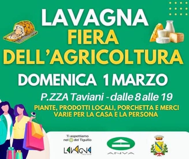 Domenica 1° marzo 2026, dalle ore 8 alle 19 torna la Fiera dell'Agricoltura a Lavagna. La manifestazione, organizzata da Comune di Lavagna, Lavagna Turismo e Anva Confesercenti, si svolge per la prima volta in piazza Taviani, nelle limitrofe piazze Pertini e La Scafa e nell'ultimo tratto di corso Genova. Nel complesso i banchi sono 128, dei quali oltre un terzo è dedicato ai generi agricoli, oltre a una postazione riservata ai prodotti ecosolidali e, ancora, merci per la casa e la persona. Allestiti anche due posteggi per i disabili.