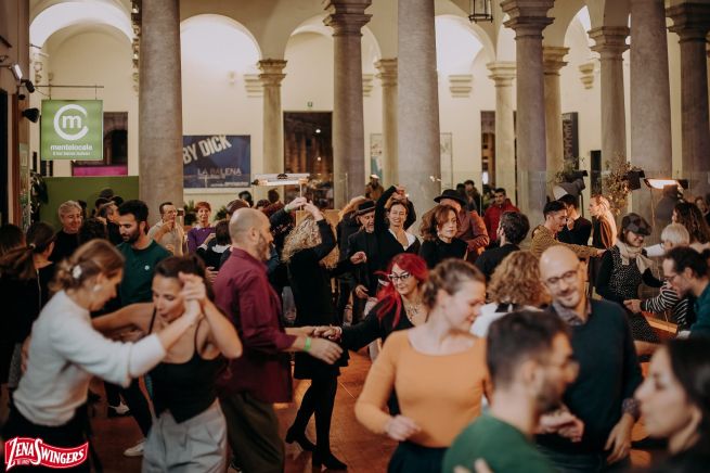 Il calendario della primavera riparte venerdì 14 marzo, con una serata dedicata alla musica dal vivo, uno degli elementi centrali nella cultura dello swing. In un luogo suggestivo come Palazzo Ducale, la combinazione tra band, pista da ballo e l’offerta gastronomica del Mentelocale Bistrot crea un’atmosfera elegante e conviviale, perfetta sia per chi balla abitualmente sia per chi si avvicina per la prima volta a questo mondo. Per l’occasione è stato proposto anche un dress code leggero e divertente: nero con un dettaglio dorato, un piccolo omaggio all’eleganza delle grandi sale da ballo.