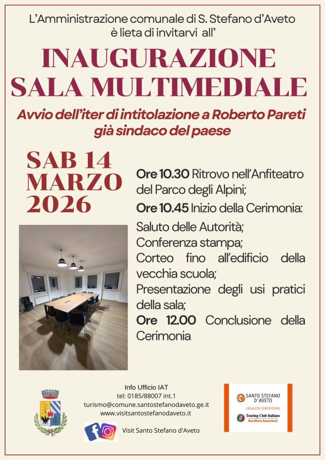 Sabato 14 marzo 2026 è in programma la presentazione anteprima, insieme agli Assessori regionali Alessandro e Alessio Piana che hanno scelto questa occasione anche per dare notizie sullo sviluppo dell'intera valle. È prevista una conferenza stampa. Questo il programma della giornata: