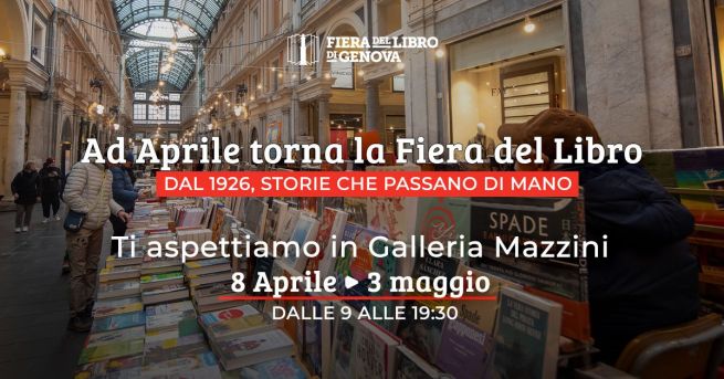 Dall'8 aprile al 3 maggio 2026 appuntamento con l'edizione primaverile della Fiera del Libro, uno degli appuntamenti più sentiti dagli amanti della lettura e della cultura, che quest'anno taglia il traguardo dell'edizione numero 100. La Fiera si svolge a Genova fin dal 1926.