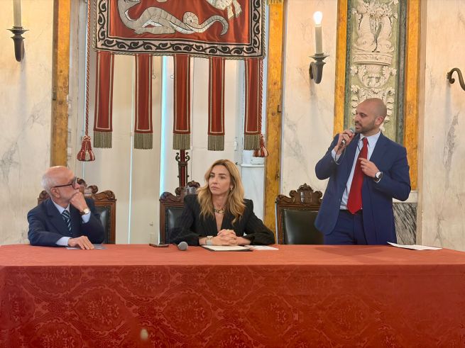 Giacomo Ronzitti, Silvia Salis e Lorenzo Garzarelli durante la conferenza stampa