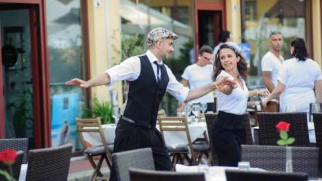 Nell’area del polo ristorazione adiacente alle piscine (lato ovest), intrattenimenti musicali.