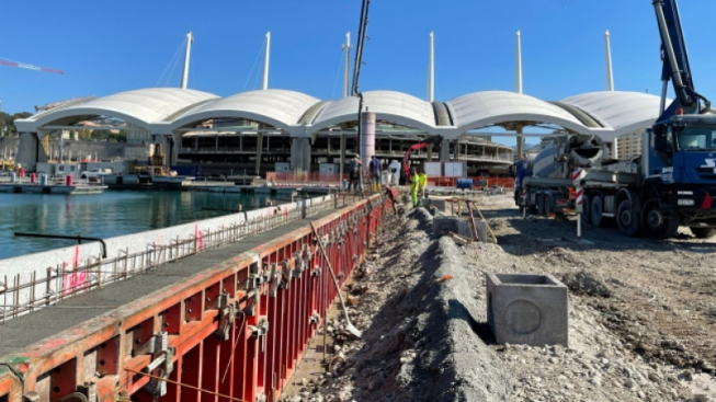 Sono stati completati al 70% i lavori di riqualificazione della banchina F, nella zona di levante di Marina Fiera Genova. Dopo le bonifiche e lo spianamento del fondale su un fronte di oltre 70 metri e la realizzazione degli elementi in calcestruzzo che compongono la serraglia di banchina, le lavorazioni in corso riguardano il getto della trave di bordo banchina e la realizzazione dei passaggi impiantistici.