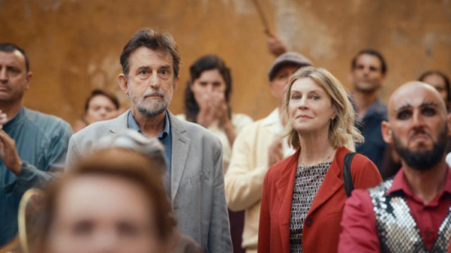 Poco si sa della trama del film, se non che il protagonista Giovanni (lo stesso Moretti) è un regista che sta girando un film sui fatti d'Ungheria, che Moretti anziché andare per le strade di Roma in Vespa come faceva in Caro diario qui inforca un monopattino elettrico, che a un certo punto arriva un circo ungherese e la scena si sposta sotto il tendone, che c’è uno psicanalista, che si parla anche di amori, separazioni, calcio, streaming, Stalin e Trotsky, che si canta e si balla, e che il finale è allegro: una rivincita del cinema sulla politica e dell’arte sulla storia. Informazioni: t. 010 583261 | e-mail Circuito Cinema Genova o sito Circuito Cinema.
