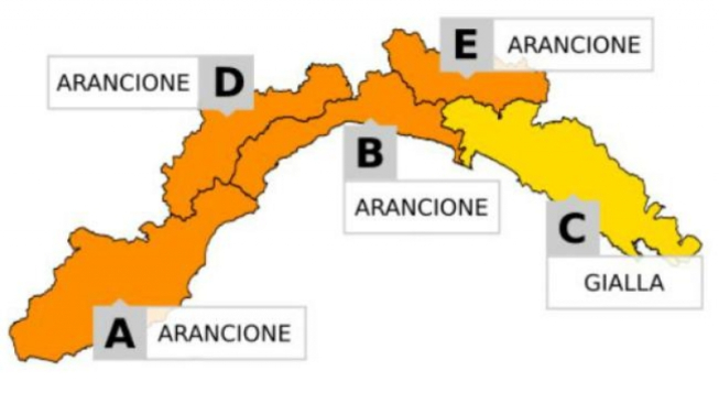 Giovedì 1° novembre: dalle prime ore della notte piogge diffuse e temporali in transito da Ovest verso Est. Alta probabilità di temporali forti su AC, alta probabilità di temporali forti organizzati e persistenti su BDE. Piogge con intensità forte su ABD, moderata su CE con cumulate significative su ABCDE. Graduale esaurimento dei fenomeni al mattino da Ponente. Venti forti settentrionali su AB, burrasca da Sud su C. Mare agitato su ABC loc. molto agitato con mareggiate su ABC (onda 3-4 m da S) in calo a partire dalla mattinata fino a molto mosso.