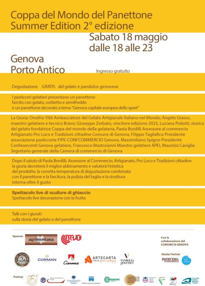 Coppa del Mondo del Panettone Summer Edition si svolge sabato 18 maggio 2024, al Porto Antico di Genova - piazza delle Feste -, con la collaborazione del maestro Eugenio Morrone campione del ''Gelato World Cup'' edizione 2020. Il tutto in attesa della finale mondiale, che si tiene a Milano dal 8 al 10 novembre 2024, con l'obiettivo di proseguire il lavoro di promozione e conoscenza del panettone, attraverso eventi e momenti formativi. Per l'occasione sarà dato spazio ai pasticceri genovesi con un corner dedicato a un dolce della tradizione, il pandolce basso genovese.