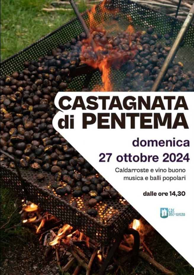 Il Gruppo Sportivo Ricreativo di Pentema dà appuntamento, domenica 3 novembre 2024 - era in programma il 27 ottobre scorso, rimandata per maltempo -, alla tradizionale Castagnata di Pentema, frazione di Torriglia nel Parco dell'Antola. A partire dalle ore 14.30 è prevista la distribuzione di caldarroste e vino, accompagnati da musica e balli popolari. Informazioni e aggiornamenti, anche in base alle condizioni meteo, sulla pagina facebook Pentema Grs. Di seguito la locandina dell'evento.