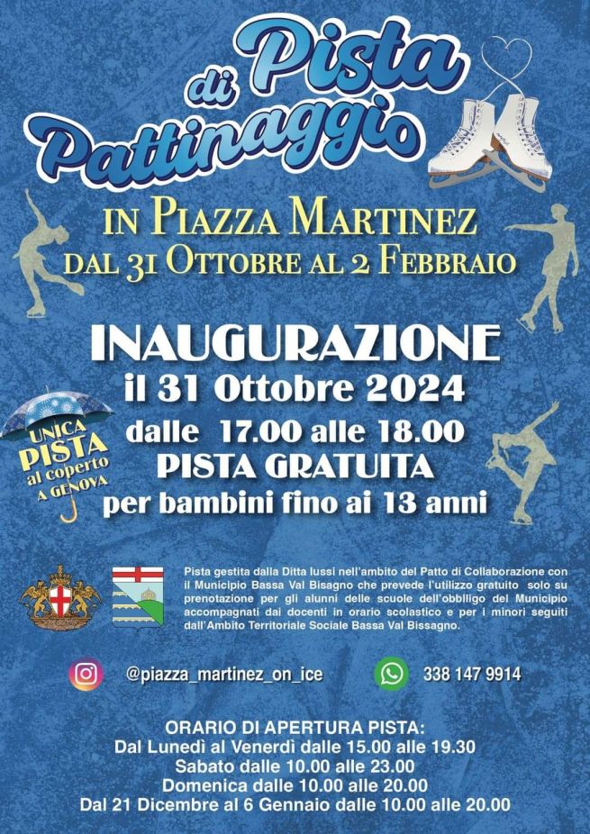 Per il dodicesimo anno consecutivo, nella riqualificata piazza Martinez a San Fruttuoso, torna la pista di pattinaggio sul ghiaccio. La pista, inaugurata il 31 ottobre scorso, è utilizzabile fino al 2 febbraio 2025.