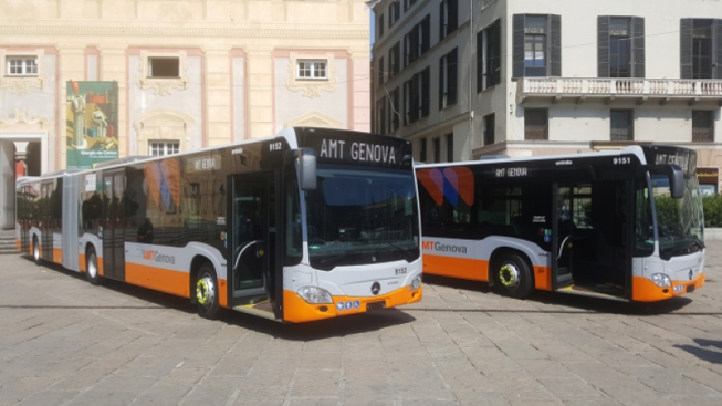 Procede il rinnovamento del parco mezzi di Amt Genova con l’arrivo di 43 nuovi bus Citaro G Mercedes da 18 metri acquistati grazie al finanziamento Por-Fers di 11.761.986 euro erogato da Regione Liguria, con l’aggiunta di un cofinanziamento da parte di Amt Genova di 2.940.497 euro.