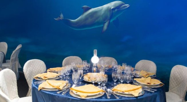 - Sistemazione ai tavoli al Padiglione Cetacei -2 accompagnati da un intervento musicale di violinista.