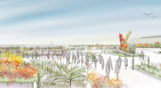 Euroflora si svilupperà interamente vista mare, per un totale di 85mila metri quadrati, partendo dalle superfici del nuovo grande parco urbano che diventerà poi la porta d'ingresso del Waterfront per entrare nell'arena centrale del rinnovato Palasport e proseguire verso le marine, nel grande piazzale antistante, e su un percorso espositivo galleggiante e terminare nel grande padiglione Jean Nouvel.