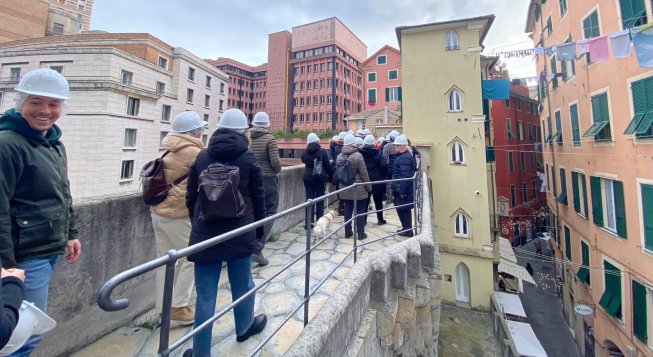 Gli ospiti, accompagnati da un operatore dell'Area Educativa della Cooperativa Solidarietà e Lavoro, partecipano a un percorso di approfondimento di Casa Colombo, per poi proseguire la vista al Chiostro di Sant'Andrea. In questa seconda tappa è possibile ammirare i capitelli scolpiti con scene di ispirazione diversa. Per proseguire il giro si attraversa Porta Soprana, il grandioso ingresso alla città per chiunque giungesse a Genova dal Levante, per poi salire sulle Mura del Barbarossa, le nuove mura cittadine costruite nel XII secolo per difendere l’autonomia della Repubblica di Genova dalle mire espansionistiche dell’imperatore Federico Barbarossa.