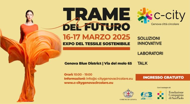 Domenica 16 e lunedì 17 marzo 2025, al Genova Blue District in via del Molo 65, si tiene l'Expo Trame del futuro. Due giornate all’insegna della sostenibilità ambientale e sociale della filiera del tessile.