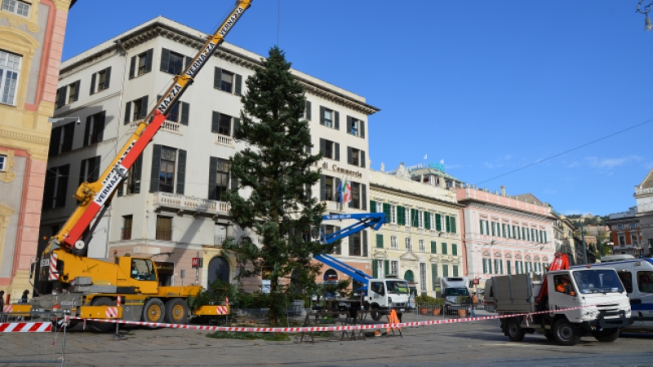 Mancano meno di un mese al Natale. E, nella mattinata di giovedì 28 novembre 2019, sono partite le operazioni di sistemazione e consolidamento dell’albero di Natale 2019 di piazza De Ferrari, arrivato dal Parco Naturale Regionale dell’Aveto. L’albero, frutto di tagli selettivi attuati per migliorare e riqualificare i boschi di aree protette, è alto circa 16 metri ed è arrivato a Genova poche ore prima del suo gemello, portato venerdì 29 novembre a Sampierdarena, in Largo Gozzano. L'accensione dell'albero di Natale a De Ferrari è domenica 8 dicembre.