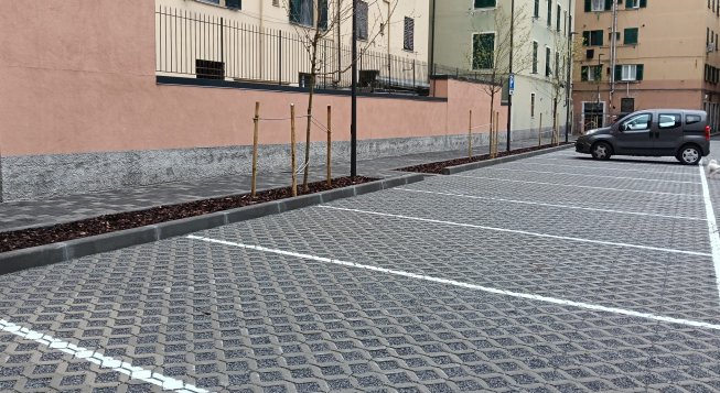 A Sampierdarena, in via Felicita Noli, un nuovo spazio urbano qualificato dal punto di vista ambientale e accessibile alle persone con disabilità, destinato a parcheggio pubblico con 38 stalli per la sosta, l'inserimento di alberature, la realizzazione di una pavimentazione totalmente drenante, l'installazione di un nuovo impianto di illuminazione pubblica e di un sistema di videosorveglianza integrata.