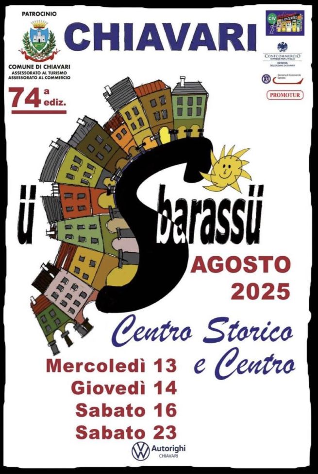 Con l'estate torna, a Chiavari, ü Sbarassü, l'evento che quest'anno si svolge nel centro storico nelle giornate del 13, 14, 16 e 23 agosto 2025. Lo Sbarazzo di Chiavari, il tradizionale fuori tutto che giunge alle 74esima edizione, non è una normale svendita di beni a magazzino: la vocazione commerciale rende questo evento una vera e propria caccia al tesoro nascosto nelle bancarelle allestite all’esterno dei negozi.