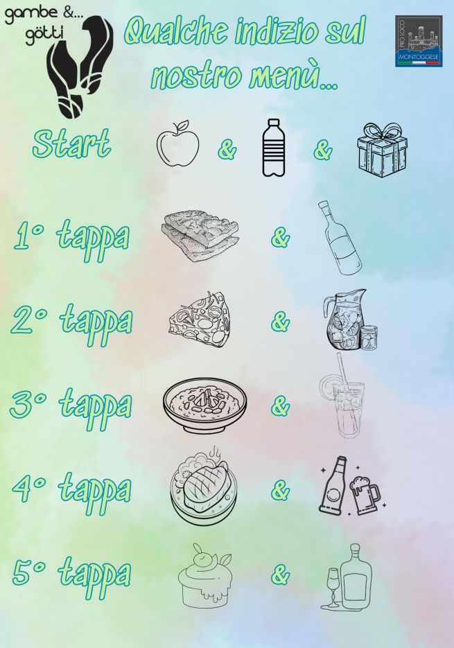 Ritrovo alle ore 10 presso l'area verde per consegna pacco gara e partenze dalle 10.30. Durante il percorso non sono servite bevande alcoliche ai minori di 18 anni. I minorenni devono essere accompagnati da un adulto e muniti di manleva. Per info, dettagli e aggiornamenti è possibile seguire la pagina Facebook Pro Loco Montoggese oppure su Instagram come @prolocomontoggese e @gambeegotti.