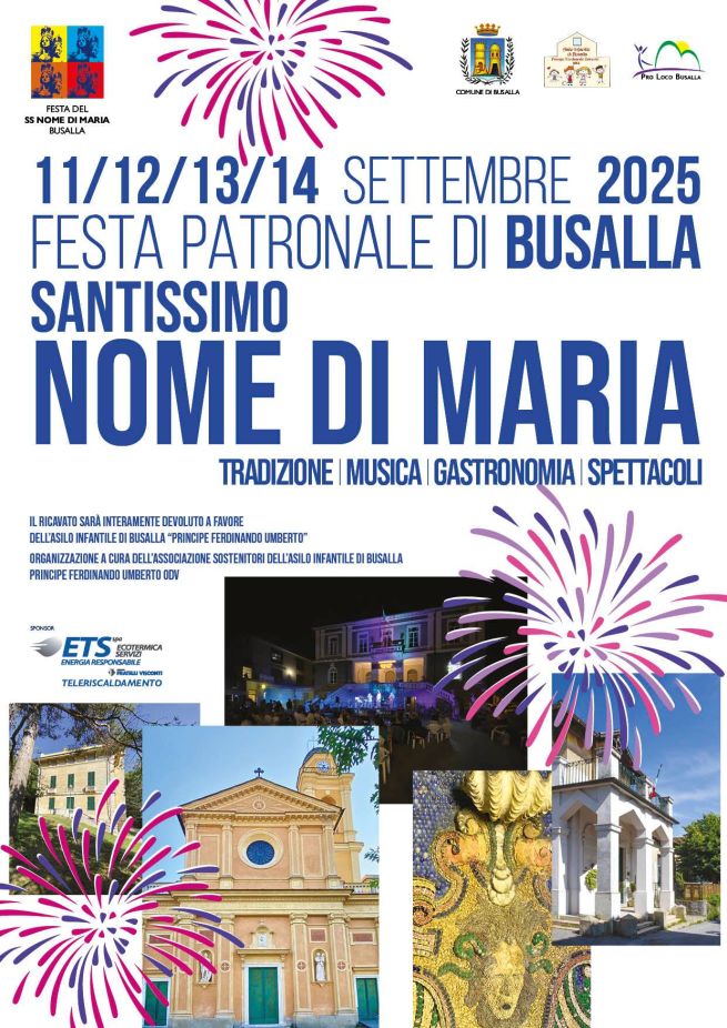 Busalla si prepara alla Festa patronale del Santissimo Nome di Maria, uno degli appuntamenti più sentiti dell'anno. Da giovedì 11 a domenica 14 settembre 2025 sono molti gli eventi in programma: cinque giornate all'insegna di musica, tradizione, spettacoli, gastronomia, mostre e mercatini nelle principali strade e piazze del paese. Da segnalare, giovedì 11 settembre alle ore 17, l'accensione delle luminarie.