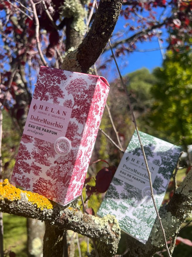 Una menzione, infine, anche al nuovo packaging, che prende ispirazione dalla fantasia iconica Toile de Jouy, con i suoi raffinati pattern floreali che si sposano alla perfezione con i colori scelti per le linee i Muschi di Helan: verde per Puro Muschio e rosso scuro per Dolce Muschio.