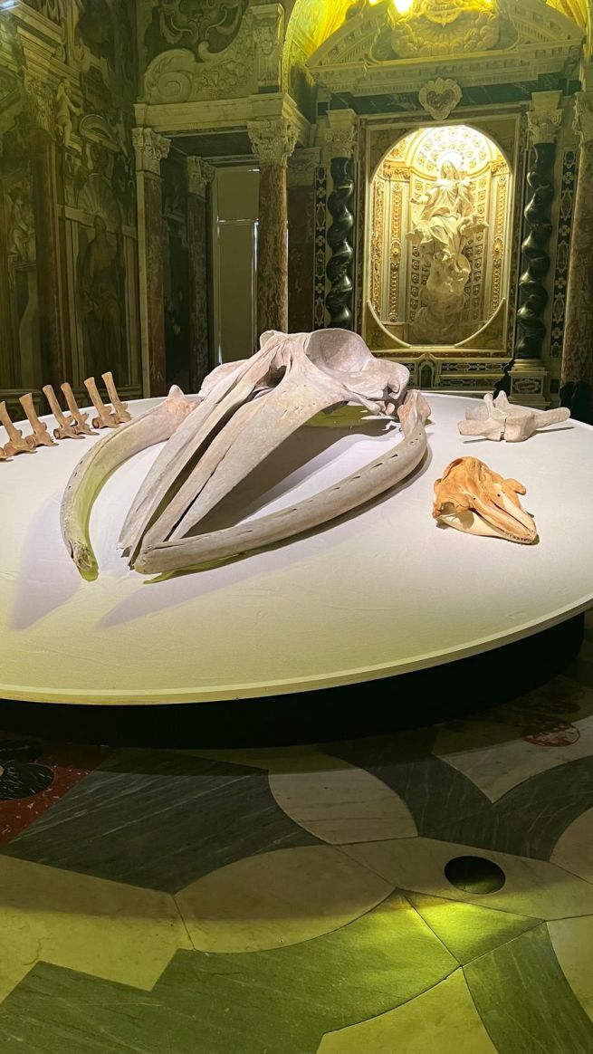La Cappella diventa una sorta di sacrario naturale, omaggio al Santuario internazionale dei cetacei del Mar Ligure. A conferire una cornice ancora più suggestiva al percorso, la presenza di parti di scheletri di balene - tra cui i fanoni, le lamine presenti nella bocca di alcune specie al posto dei denti, caratteristiche di centinaia di illustrazioni. Si tratta di materiali provenienti dal Museo di Storia Naturale Giacomo Doria di Genova.