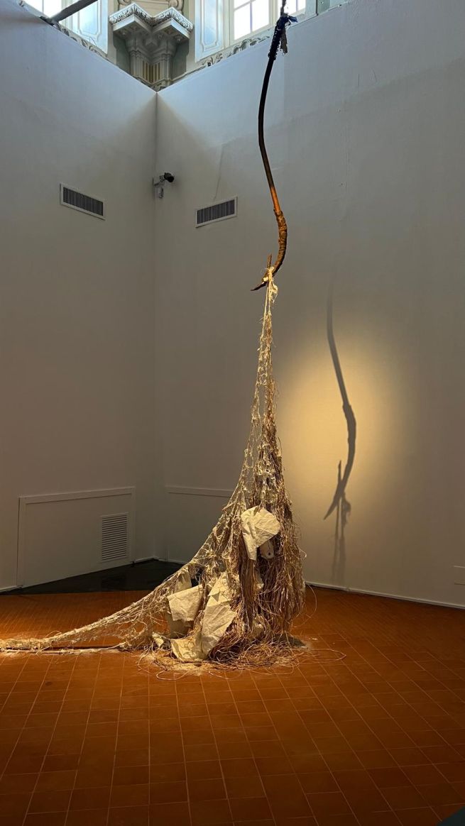 Vicino a lui, l'artista Jumana Manna presenta un lavoro realizzato con tubi di scarico delle acque per creare una connessione tra il mondo terreno e l'abisso, tra ciò che è considerato scarto e ciò che può riacquisire un nuovo valore.