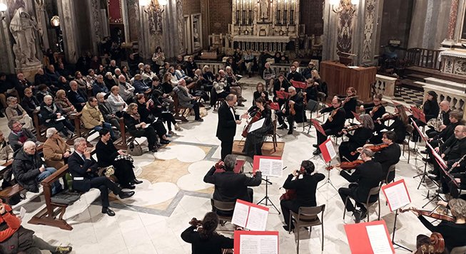 Il programma prevede, fra gli altri brani, la prima esecuzione assoluta del Concerto per violino e orchestra d'archi composto appositamente per la "Jean Sibelius" dal genovese Andrea Basevi. L'ingresso è libero.