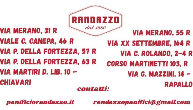 Randazzo, a oggi la più grande catena artigianale di panifici-pasticcerie, ex concorrente del Forno delle Meraviglie del Tigullio, apre il suo nono punto vendita a Chiavari con la rappresentanza del sindaco Messuti per rendere omaggio al continuo impegno su investimenti e formazione sul territorio e per i 45 anni di presenza del marchio a Genova. L'evento si svolge giovedì 23 ottobre 2025, alle ore 11, presso via Martiri della Liberazione 10.