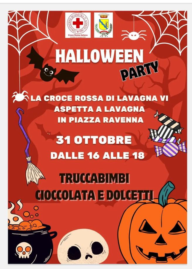 La Croce Rossa di Lavagna organizza un mostruoso Halloween Party nella serata di venerdì 31 ottobre 2025, dalle ore 16 alle 18 in piazza Ravenna: intrattenimento per i più piccoli con truccabimbi, cioccolata e dolcetti. La festa a Lavagna inizia già giovedì 30 ottobre 2025, dalle 16.30, con la Ludobiblioteca Libringioco che si trasforma in un luogo pieno di misteri e pozioni magiche. Appuntamento sempre in piazza Ravenna con giochi horror, merenda e dolcetti per tutti.