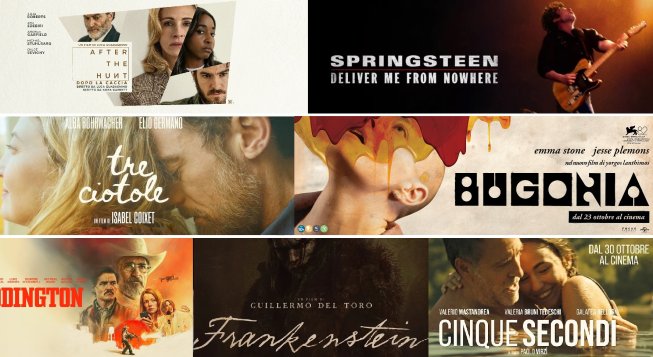 Con la stagione premi entrata nel vivo, arrivano anche i primi possibili contendenti alla prossima notte degli Oscar, come il sardonico Eddington di Ari Aster, ritratto della provincia americana paralizzata dall'epidemia di Covid e dalle proteste di strada, il complottistico Bugonia, remake di un piccolo cult della cinematografia coreana firmato da Yorgos Lanthimos, e il biopic musicale dedicato al Boss in persona, Springsteen - Liberami dal nulla, incentrato sulla tormentosa registrazione dell'album ''Nebraska''. Infine, a ridosso della festa di Halloween, due appuntamenti orrorifici che aggiornano ai nostri tempi la grande tradizione letteraria e cinematografica, ossia il Frankenstein di Guillermo del Toro e Dracula - L'amore perduto di Luc Besson.