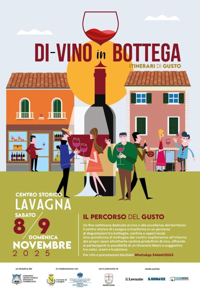 Weekend dedicato al vino e alle eccellenze del territorio a Lavagna: appuntamento con Di-Vino in Bottega, nelle giornate di sabato 8 e domenica 9 novembre 2025. Il centro storico si trasforma in un percorso di degustazioni tra botteghe, cantine e sapori locali.