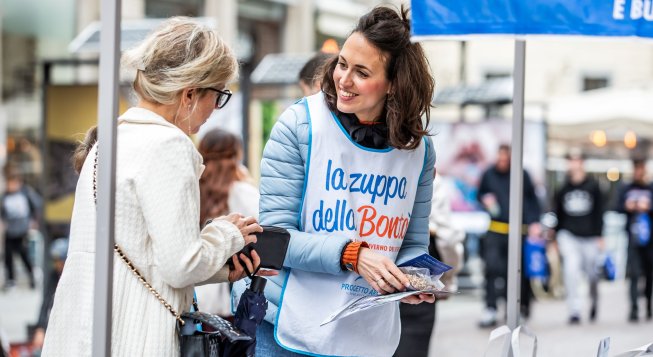 Qui i volontari distribuiscono ai cittadini una confezione di Zuppa della Bontà a fronte di una donazione minima di 5 euro. I fondi raccolti sono destinati all’assistenza in strada delle persone fragili nelle città coinvolte, garantendo in particolare la distribuzione di pasti caldi durante l’inverno. La zuppa della Bontà, da cucinare a casa, è disponibile in 3 varianti, tutte biologiche e provenienti dal mercato equo solidale: zuppa della salute, zuppa della tradizione, zuppa di farro e lenticchie.