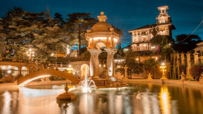 L'intervento di riqualificazione, per un investimento complessivo di 300 mila euro, finanziato da Fondazione Compagnia di San Paolo, ha interessato il recupero dei giochi d'acqua e il restauro filologico del giardino attorno alla Peschiera. La Villa Grock è una villa fatta costruire da Charles Adrien Wettach, clown di fama mondiale noto come "Grock" (al suo interno c'è il Museo del Clown), originariamente nota come "Villa Bianca". Fu residenza della famiglia di Grock nella prima metà del XX secolo.