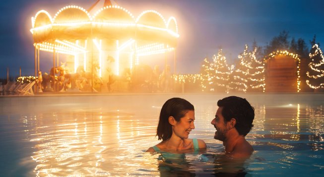 La serata ha inizio con un aperitivo di benvenuto servito tra le vasche interne, seguito dal cenone di Capodanno organizzato tra bistrot e pool bar e, infine, da un ricco buffet di dolci. Il brindisi della mezzanotte viene condiviso nelle vasche benessere, dove musica, luci e vapori rendono l’atmosfera davvero magica. Il momento più scenografico è previsto per le ore 23.30, quando, all’esterno, va in scena una performance luminosa e teatrale, con una speciale sorpresa al termine per tutti gli ospiti.