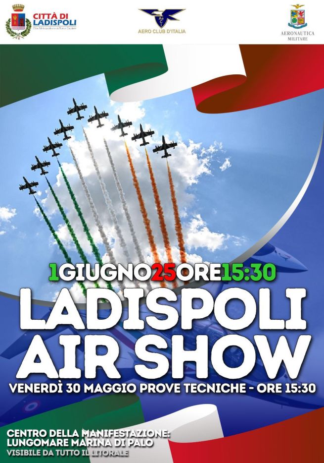 Le Frecce Tricolori, dopo la tappa di Sestriere per il Giro d'Italia, arrivano a Ladispoli. L'Air Show 2025 vede le Frecce tornare nel Lazio, per sorvolare il cielo del comune costiero in provincia di Roma. Da venerdì 30 maggio a domenica 1 giugno 2025, è previsto un weekend ricco di eventi. In programma ci sono prove nei cieli con il tricolore, musica e il momento clou con l'esibizione delle Frecce Tricolori previsto alle ore 15.30.