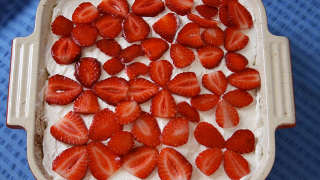 Ora prendete i biscotti e iniziate a intingerli nel succo di fragola. Disponete il primo strato alla base di una pirofila e adagiatevi sopra un corposo strato di crema. Alternate biscotti inzuppati, crema e fragole a pezzettini. Spolverate con zucchero a velo e volià, potrete guardare Iginio Massari direttamente negli occhi, senza temere rivali!
