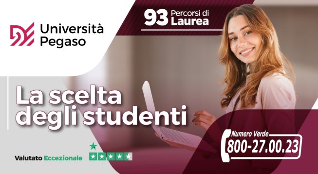 Per ricevere tutte le informazioni o per avviare subito il tuo percorso contatta Università Pegaso - Vantaggio al numero verde 800 27 00 23 o scrivi a ecp.vantaggio@unipegaso.it.