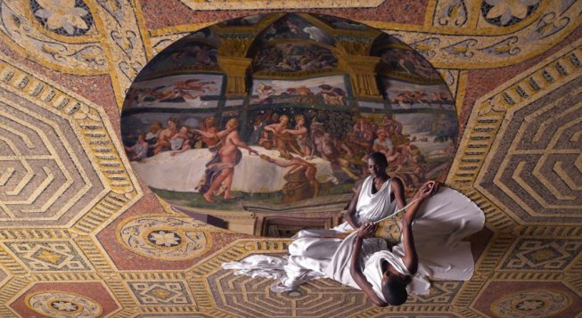 Con il curatore Lorenzo Giusti, la Fondazione ha individuato in Isaac Julien l’artista a cui commissionare un’opera capace di illuminare tanto il fascino quanto la complessità di Palazzo Te e le domande che il palazzo e i suoi affreschi pongono al mondo contemporaneo. Il film, girato a Palazzo Te, vede come protagoniste le attrici di fama internazionale Sheila Atim e Gwendoline Christie: le due interpreti assumono il ruolo di entità celesti, profetiche e ultraterrene, come se prendessero vita direttamente dagli affreschi che decorano le pareti del palazzo.