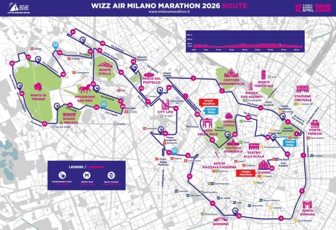 Domenica 12 aprile 2026 torna la maratona di Milano, giunta alla ventiquattresima edizione. Novità di quest'anno, il percorso non è più ad anello ma in linea: la partenza è prevista da corso Sempione, il traguardo invece è in piazza del Duomo, con un tracciato ricco di novità che tocca nuove zone della città per risultare sempre più coinvolgente.