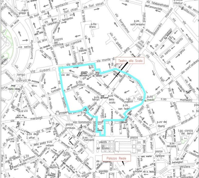Lunedì 2 febbraio 2026, in concomitanza con la presentazione dei Giochi Olimpici e Paralimpici di Milano Cortina 2026 al presidente della Repubblica Sergio Mattarella, è prevista la chiusura alla circolazione veicolare nelle strade intorno al Teatro alla Scala e a Palazzo Marino, tra cui un tratto di via Manzoni, via dell’Orso e via Santa Margherita dalle ore 14.00 alle ore 24.00. Nell’area, a cui possono comunque accedere i residenti e altre categorie autorizzate dall’ordinanza, sono previste deviazioni delle linee di superficie del trasporto pubblico in base alle indicazioni dell’Autorità di pubblica sicurezza, a partire dalle ore 14.00. Dalle ore 7.00 del mattino nella stessa zona, è vietata la sosta.