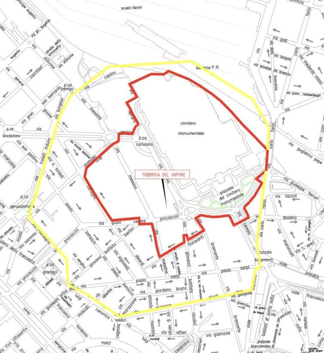 Nella serata di giovedì 5 febbraio 2026, dalle ore 13.00 alle ore 24.00 presso la Fabbrica del Vapore sono chiuse al traffico veicolare piazzale Cimitero Monumentale, via Luigi Nono, piazza Coriolano, via Galileo Ferraris e i tratti più vicini all’area dell’evento di via Bramante, via Giovanni Battista Niccolini, via Cenisio, via Messina, via Ceresio e via Giulio Cesare Procaccini. A partire dalle ore 14.00, il divieto si allarga ad un’area più ampia, estendendosi verso ovest e verso sud, comprendendo anche via Ceresio, via Bramante, via Paolo Sarpi e vie limitrofe, via Lomazzo e via Tartaglia. Anche in questa zona, a cui possono accedere i residenti e altre categorie di veicoli derogati dall’ordinanza, sono previste deviazioni delle linee di superficie del trasporto pubblico in base alle indicazioni dell’Autorità di pubblica sicurezza, a partire dalle ore 14.00. Mentre dalle ore 23.59 di mercoledì 4 febbraio 2026 e per tutta la giornata di mercoledì 5 è vietata la sosta.
