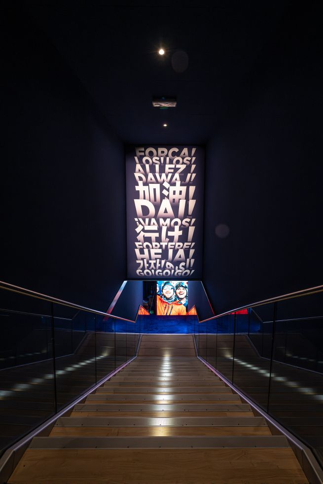 Attraverso La Grande Discesa si accede al piano inferiore: non una semplice scala ma un tributo al valore delle persone, accolte dall’energia del pubblico come veri atleti. Il percorso prosegue con curiosità sulle discipline Olimpiche e Paralimpiche lungo la parete Numerabilia, con lo Sports Locker, che rende interattivo il locker per la spesa online, e con S come Storia, una timeline multimediale che racconta, in parallelo, i momenti più rilevanti dello sport italiano alle Olimpiadi e le tappe significative della storia di Esselunga.