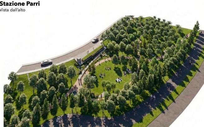 In prossimità di ogni stazione sorgeranno anche tre nuovi giardini, rispettivamente di 2500 mq, 8700 mq e di oltre 1,5 ettari. In particolare, il giardino Olmi avrà anche una vocazione sportiva con campetti da basket, skate park, pista da corsa, palestra outdoor e una parete per arrampicata grazie alla completa ristrutturazione del Centro Sportivo Aics Olmi.