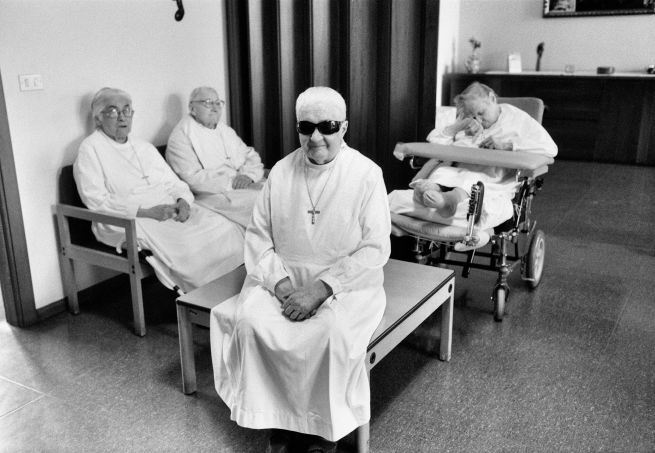 Il progetto espositivo è articolato in tre sezioni e prende avvio da un nucleo di fotografie realizzate da Marianna Sambiase, educatrice nel Nucleo Alzheimer della Rsa San Pietro di Fondazione Sacra Famiglia. Qui Sambiase affronta il tema complesso e delicato della malattia dell’Alzheimer senza soffermarsi sulle strutture di cura o sulle terapie, ma concentrandosi sulle persone, sui volti, sui gesti, sulle mani sofferenti e sulle piccole incongruenze, rivelando come queste persone così fragili continuino in modo incessante a manifestare un bisogno di riconoscimento che interpella chiunque le incontri. La sua fotografia diventa in questo modo uno strumento di relazione, una sorta di estensione della cura e dell’identità dei pazienti.